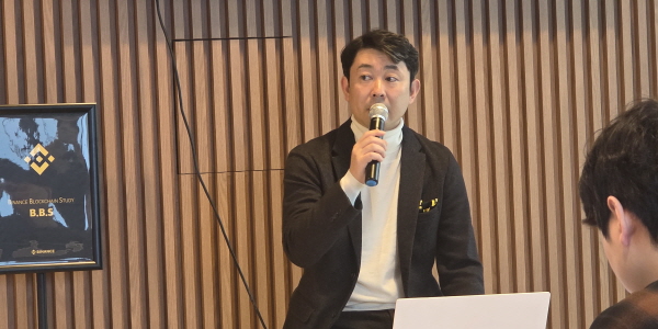 | ▲ 치노 다케시 바이낸스재팬 대표가 11일 서울 서대문구에서 열린 ‘바이낸스 3회 BBS’에서 발표하고 있다. <비즈니스포스트> |