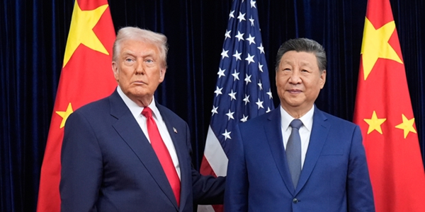 ▲ 도널드 트럼프 미국 대통령(왼쪽)이 2025년 10월30일 부산 김해국제공항에서 시진핑 중국 국가주석과 만나 기념촬영하고 있다. <연합뉴스>