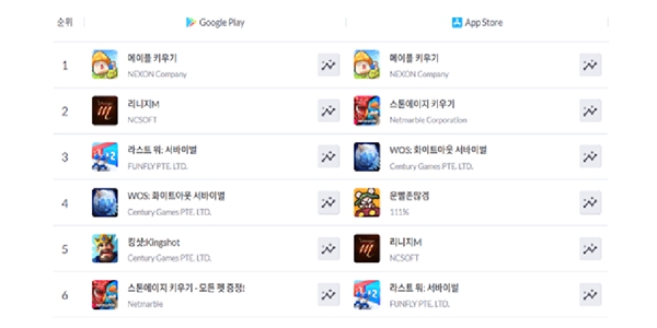 방치형 장르 신작 '스톤에이지 키우기'가 초반 흥행하고 있는 가운데 넥슨의 '메이플 키우기'도 여전히 양대 앱 마켓 매출 1위를 지키고 있다.