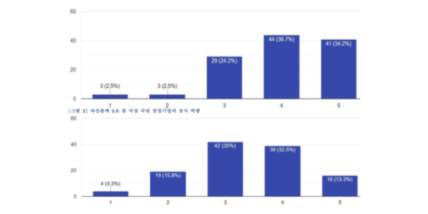 5조 원 이상 상장사를 대상으로도 전체 응답자의 32.5%가 공시 역량이 높다고 답했으며 13.3%가 매우 높다고 보는 것으로 나타났다.