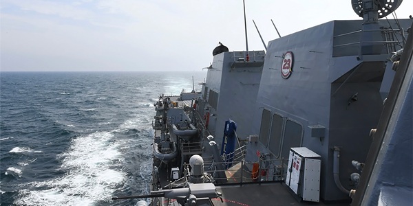 | ▲ 중국이 대만 해협을 봉쇄하면 이란의 호르무즈 해협 봉쇄보다 전 세계 공급망에 더 큰 악영향을 줄 수 있다는 전망이 나왔다. 대만 해협을 통과하는 미국 군함. [사진=연합뉴스 제공] |