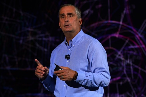 | ▲ 브라이언 크르자니크 인텔 CEO가 1월9일 미국 CES2018에서 발표행사를 열고 업데이트를 통한 CPU 보안결함 해결을 약속하고 있다. <인텔> |