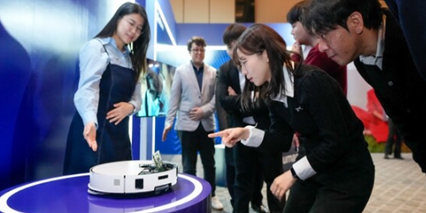 ▲ 삼성전자 직원이 20일 서울 용산구 그랜드하얏트서울에서 열린 2026 암참 이사진 취임식 현장에서 로봇청소기 '비스포크 AI 스팀'의 신제품을 소개하고 있다. <삼성전자>