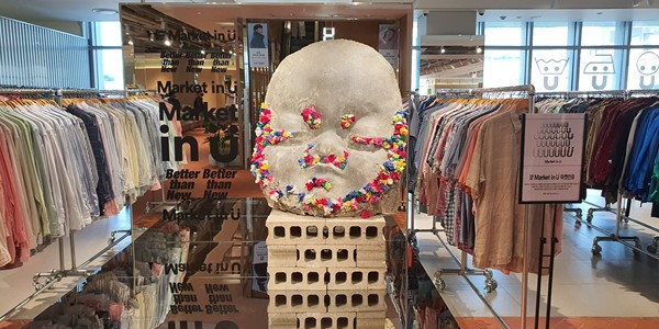 ▲ 16일 서울 서대문구 현대백화점 신촌점 MZ세대 전문관 유플렉스 4층 ‘세컨드 부티크’에서 중고 의류를 파는 ‘마켓인유’ 매장에 전시된 조형물. <비즈니스포스트>