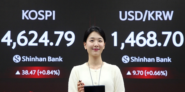 | ▲ 12일 코스피가 4624.79로 마쳤다. 사진은 이날 정규거래 마감 뒤 서울 중구 신한은행 딜링룸. <신한은행> |
