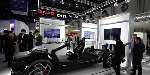 | ▲ 관람객이 13일 아랍에미리트 아부다비에서 열린 에너지 박람회에서 중국 CATL이 전시한 제품을 구경하고 있다. <연합뉴스> |