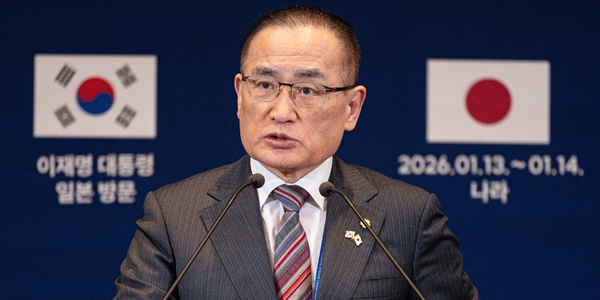 | ▲ 위성락 청와대 국가안보실장이 14일 일본 오사카 프레스센터에서 한일 정상회담 관련 주요 내용을 브리핑하고 있다. <연합뉴스> |