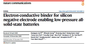 심사위원들은 이번 연구가 기존 액체 전해질 기반 배터리에서 활용이 제한됐던 전도성 고분자 바인더를 전고체 배터리 환경에서 안정적으로 구현하며 적용 범위를 넓혔다는 점에 주목했다.