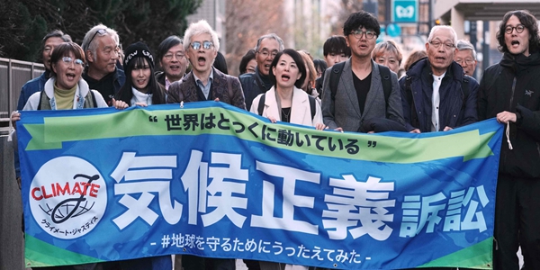 | ▲ 일본 시위대가 2025년 12월18일 정부의 기후변화 조치 부재에 따른 손해배상 청구 소송을 제기한 뒤 도쿄 지방법원 앞 인도를 행진하고 있다. <연합뉴스> |