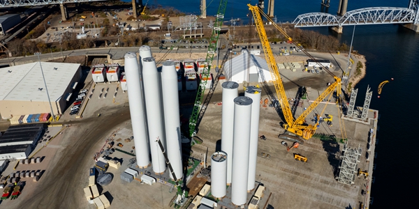 | ▲ 미국 코네티컷주 뉴런던에 위치한 '레볼루션 윈드' 해상풍력 발전기 조립 현장. 레볼루션 윈드는 오스테드가 지역 에너지 사업자 '에버소스'와 합작해 설립한 법인이다. <연합뉴스> |
