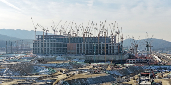 ▲ 타워크레인이 20일 경기 용인시 처인구 원삼면에 위치한 반도체클러스터 일반산업단지 공사 현장에 작업하고 있다. <연합뉴스>