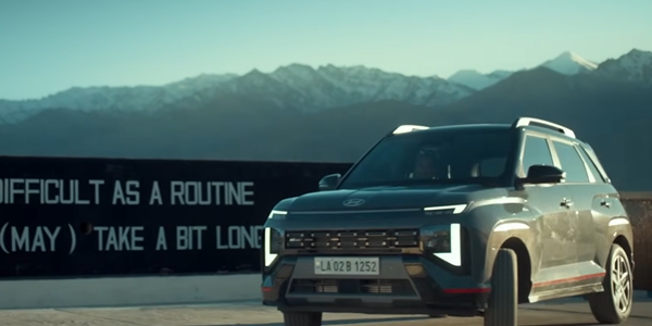 ▲ 현대차 베뉴가 인도 최북단 고산 지대인 사이첸 도로에서 주행하고 있다. <현대차 인도법인 유튜브 영상 갈무리>