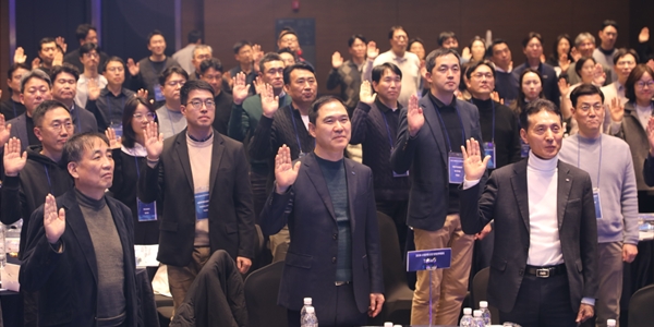 신학기 Sh수협은행장(가운데)과 임직원들이 16일 강원 강릉에서 열린 '2026년 경영전략회의'에서 ‘금융소비자보호 강화를 위한 수협은행 임직원의 다짐’을 선서하고 있다. < Sh수협은행 >