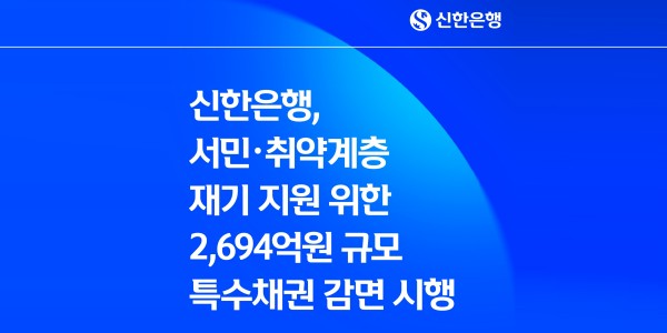 신한은행은 금융소비자 보호와 서민·취약계층 금융거래 정상화를 위해 ‘소멸시효 포기 특수채권’ 2694억 원을 감면하는 포용금융 지원을 시행한다고 28일 밝혔다.