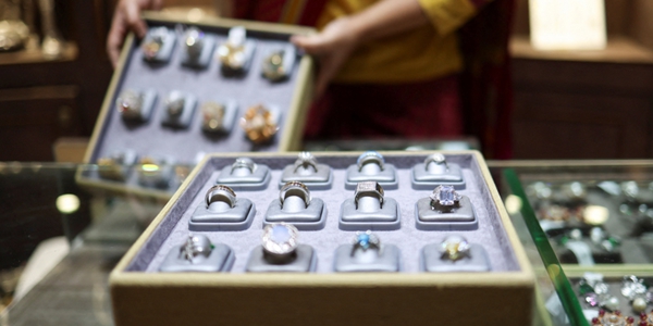 | ▲ 귀금속 상인이 1월28일 인도 캘커타에 위치한 상점에서 은 반지가 든 함을 꺼내놓고 있다. <연합뉴스> |