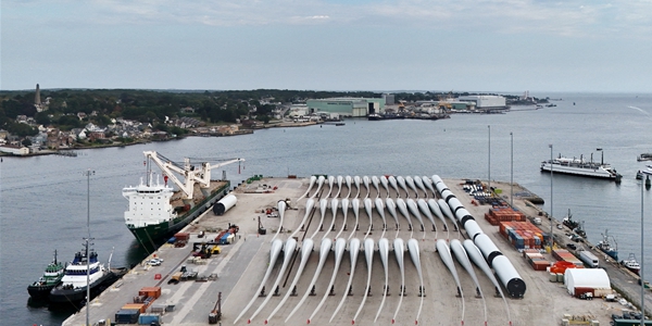 ▲ 미국 코네티컷주 뉴런던에 위치한 해상풍력 전용 항만 모습. 해상풍력 터빈용 부품들이 선적되기를 기다리고 있다. <연합뉴스>