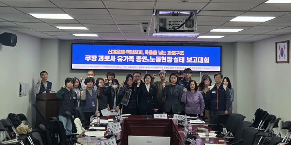 이날 보고대회에는 이양수 전국민주노동조합총연맹 부위원장, 민병덕·박홍배 더불어민주당 의원, 정혜경·손솔 진보당 의원, 쿠팡 과로사 직원 유가족, 쿠팡 현장 노동자 등이 참석했다.