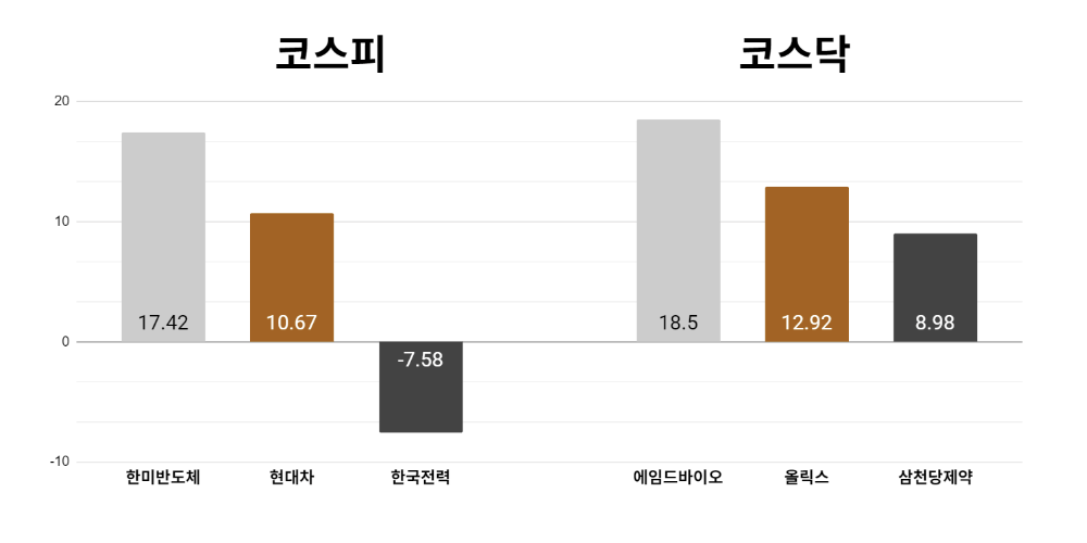 [오늘의 주목주] '신규 장비 공급' 한미반도체 17%대 상승, 코스닥 에임드바이오도 18%대 올라