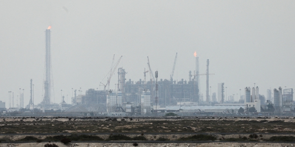 | ▲ 카타르 라스라판에 위치한 카타르에너지의 LNG 생산 설비 굴뚝에서 2일 플레어링으로 보이는 화염이 올라오고 있다. <연합뉴스> |