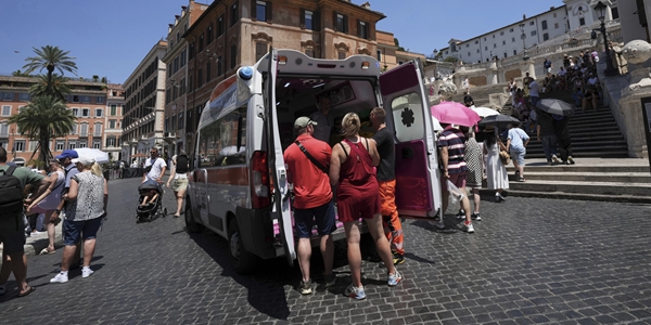 | ▲ 지난해 7월 폭염이 발생한 이탈리아 로마에서 구급대원들이 쓰러진 시민을 구급차로 이송해 살피고 있다. <연합뉴스> |