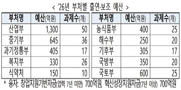 ▲ 'AX 스프린트' 사업 관련 부처별 2026년 예산. <기획예산처>