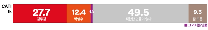 이념성향별로는 중도층에서 김 의원 48.9%, 김 시장 32.9%를 보였다. 진보층의 78.4%가 김 의원을 지지한 반면, 보수층의 66.1%는 김 시장을 선택했다.