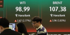 23일(현지시각) 5월 인도분 브렌트유는 배럴당 99.94달러에, 4월 인도분 미국 서부텍사스산원유(WTI)는 88.13달러에 거래를 마쳤다. 모두 직전 종가보다 약 10% 내렸다.