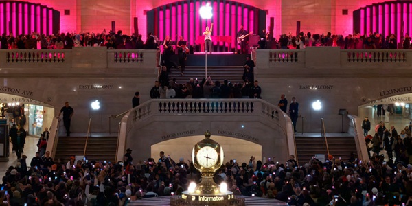 | ▲ 3월13일(현지시각) 미국 뉴욕 그랜드센트럴에서 애플 50주년 기념 행사가 열리고 있다. <애플> |