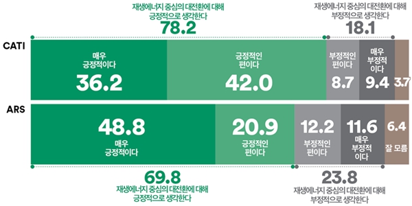 [여론조사꽃] 재생에너지 중심으로 대전환 78.2% '긍정', 정부 에너지 전환 정책 속도