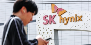 ▲ 한 사람이 23일 경기도 이천 SK하이닉스 본사 앞을 스마트폰을 사용하며 지나가고 있다. <연합뉴스>