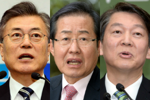 | ▲ 왼쪽부터 문재인 더불어민주당 후보, 홍준표 자유한국당 후보, 안철수 국민의당 후보. |