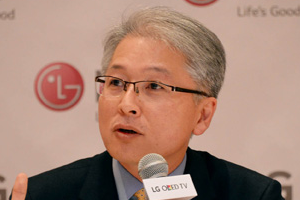 | ▲ 2016년 3월28일 서울 양재동에서 열린 ‘LG시그니처’ 브랜드 및 신제품 발표회에서 권봉석 당시 LG전자 HE사업본부장 부사장이 올레드TV 신제품을 선보이고 있다. |