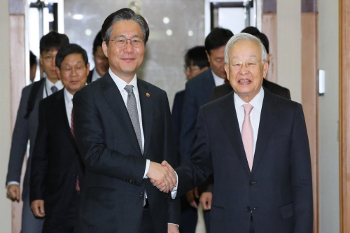 성 장관은 손 회장에게 산업계 현장의 목소리와 어려움을 듣고 한국 산업계의 문제점을 해결하기 위해 정부와 업계 사이의 협업 방안을 논의했다.