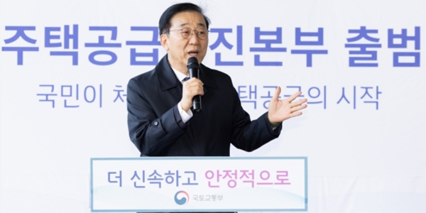 2일 건설업계에 따르면 정부세종청사에서 열린 주택공급추진본부 현판식 뒤 기자들과 만나 “1월 중 미국 출장을 다녀와서 바로 (추가 공급대책을) 진행하는 것을 준비하고 있다”며 “서울과 수도권 전반을 계속해서 들여다보면서 발표를 준비하고 있다”고 말했다.