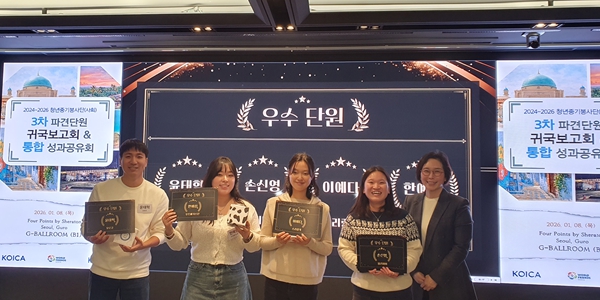 최흥열 KIDC 이사장은 “언어가 통하지 않고 기대만큼 일이 흘러가지 않았던 순간도 있었겠지만 현장을 떠나지 않고 사람을 포기하지 않고 끝까지 책임을 다해 주셨다”며 “그 선택과 태도 자체가 이미 큰 성과로 여러분이 현지에서 만든 작은 순간들은 누군가에게는 세상을 보는 시야를 넓히는 계기가 됐을 것이다”고 말했다.