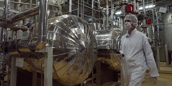 ▲ 방호복을 착용한 직원이 2005년 3월30일 이란 이스파한 시 외곽에 위치한 우라늄 전환 설비에서 시설을 점검하고 있다. <연합뉴스>
