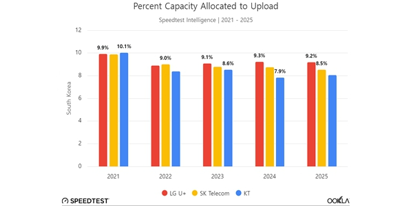 이는 2010년 이동통신 3사가 업링크 할당 비중을 약 10% 안팎으로 유지하던 것과 비교해 후퇴한 수치로 평가된다.