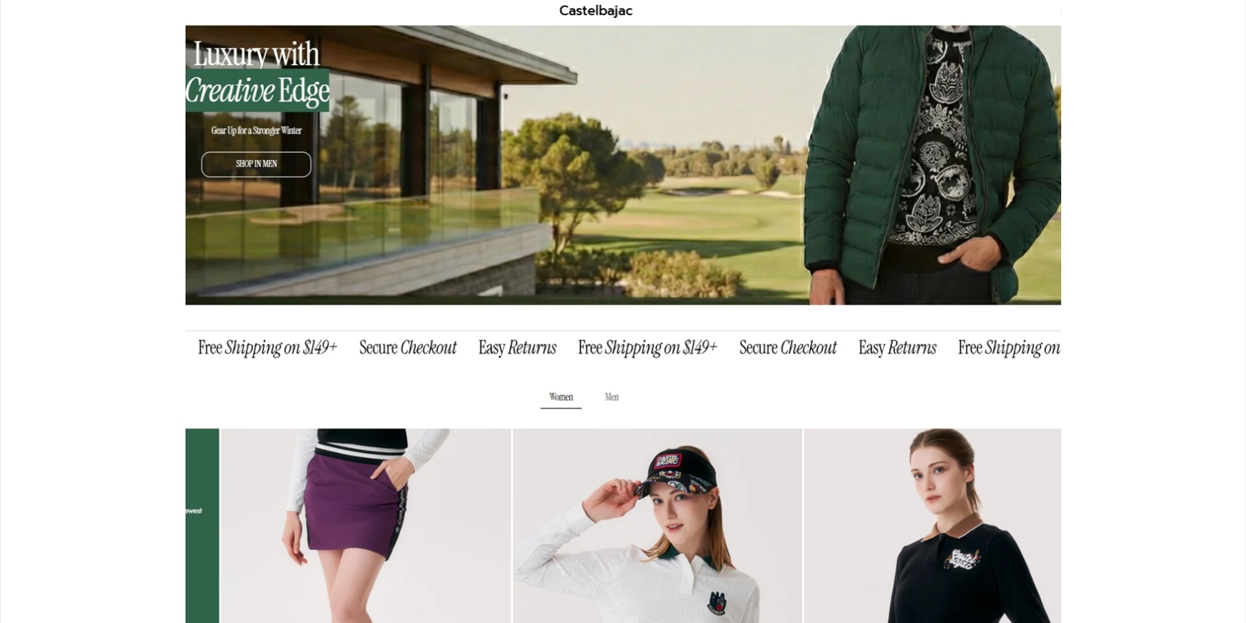 ▲ 형지글로벌이 골프웨어 분야의 전문가 권윤태 상무를 영입했다. 사진은 골프웨어 브랜드 까스텔바작의 미국 공식 온라인스토어. <형지글로벌>