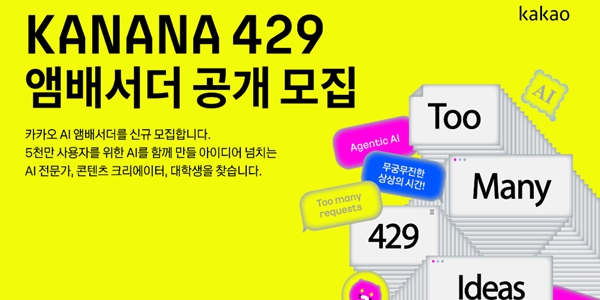 [비즈니스포스트] 카카오가 자사 인공지능(AI) 브랜드 '카나나'를 알리고 사용자 의견을 수렴할 AI 앰배서더 '카나나 429'를 새로 모집한다고 30일 밝혔다.