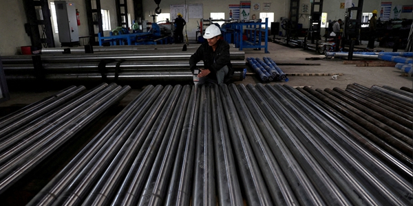 ▲ 인도 아흐메다바드에 위치한 한 철강공장에서 노동자가 생산된 제품의 품질을 점검하고 있다. <연합뉴스>