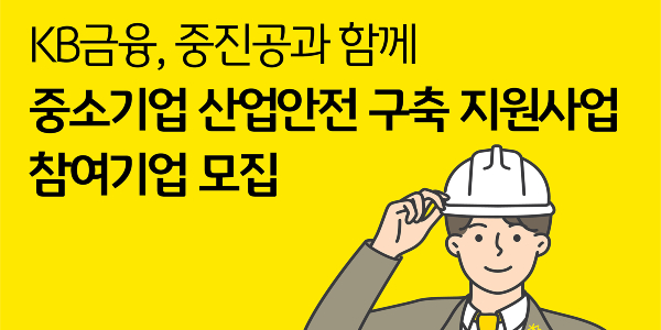 KB금융은 중소벤처기업진흥공단(중진공)과 산업안전 역량 강화와 중대재해 예방을 위한 ‘중소기업 산업안전 구축 지원사업’에 참여할 기업 50곳을 모집한다고 25일 밝혔다.