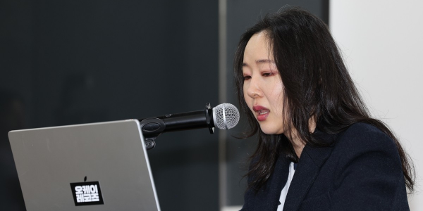 ▲ 민희진 어도어 전 대표이사가 25일 서울 종로구 모처에서 열린 기자회견에서 발언하고 있다. <연합뉴스>