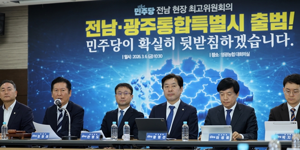 정 대표는 6일 전남 영광군 영광농협에서 열린 현장 최고위원회에서 "특별법안 통과로 만들어질 전남·광주 통합특별시는 서울특별시에 준하는 지위를 갖게 됨으로써 대한민국 지방 주도 성장을 선도하는 첫 사례가 될 것"이라고 말했다.