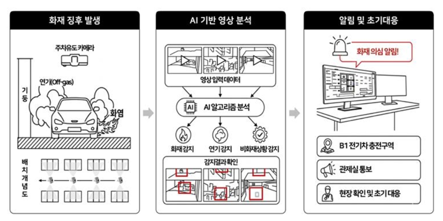 GS건설은 아파트 지하주차장 화재에 효과적으로 대응하기 위한 AI 기반 화재감지 CCTV 기술을 실증하고 상용화를 준비한다고 18일 밝혔다.