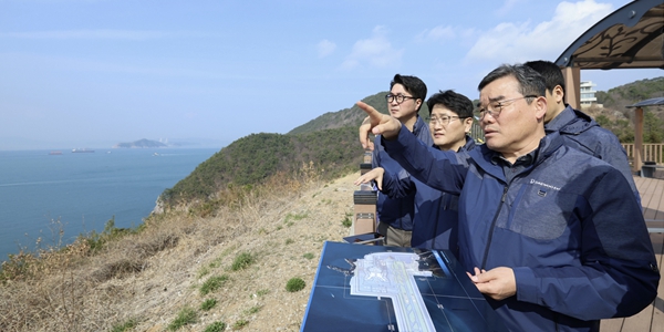 김 사장은 대항전망대, 외양포항, 새바지항, 연대봉 등 주요 지점을 방문해 공항부지 조성 예정지와 인근 해역의 지형 및 주변 환경을 확인하며 현장 관계자들로부터 보고를 받았다.