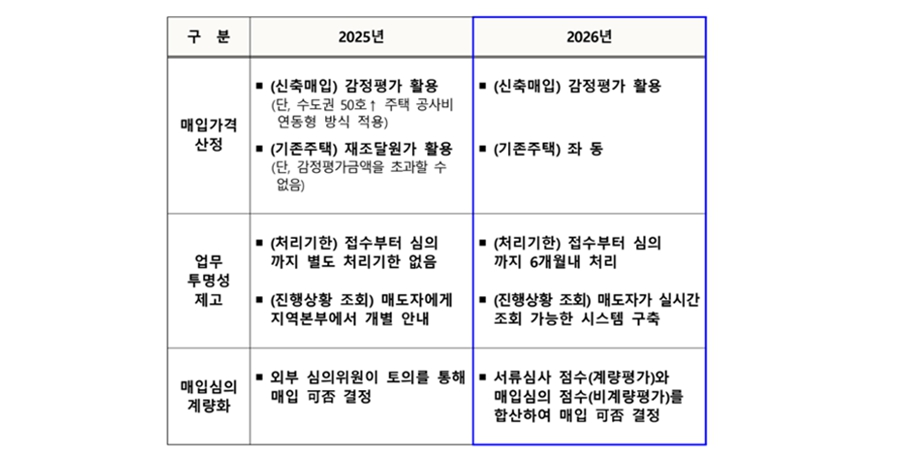 이밖에도 △매도신청인의 예측 가능성 등을 높이는 ‘심의기간 총량제’ 도입 △매입심의 기준에 계량적 요소 도입 등을 통해 매입임대사업의 적정성을 높인다.