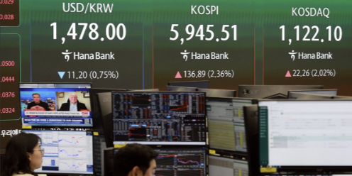 14일 오전 13일 오전9시32분 기준 코스피는 직전 거래일보다 2.84%(165.22포인트) 오른 5973.84를 보이고 있다.