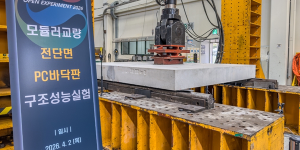 모듈러 전단면 PC바닥판은 설계하중의 약 1.6배에 이르는 극한 하중을 견뎠고 차량의 반복하중을 모사한 피로시험에서도 2백만 회를 통과했다.