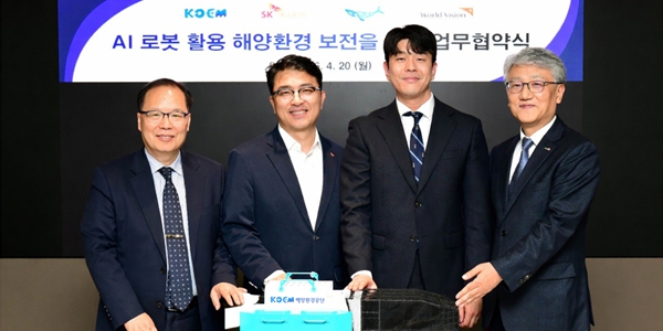 SK에코플랜트는 지난 20일 서울 종로구 본사에서 해양환경공단, 쉐코, 월드비전과 'AI 해양정화 로봇 도입 및 미래세대 해양환경 교육'을 위한 다자간 업무협약을 체결했다고 21일 밝혔다.